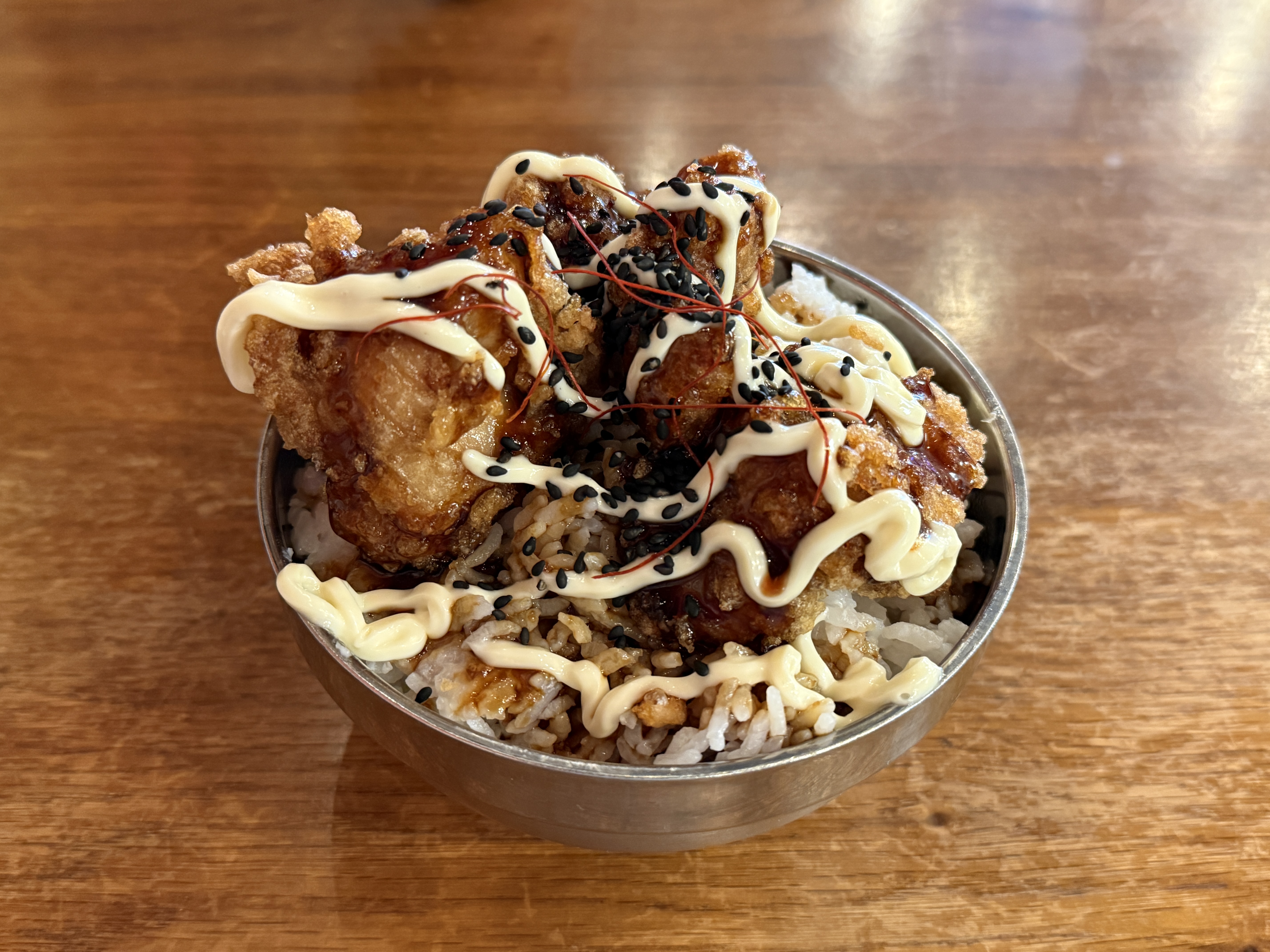 I also ordered the Mini Karaage Bowl, which was surprisingly delicious. The crispy fried chicken was topped with a special sauce and mayonnaise that mixed perfectly with the rice, making it incredibly flavorful.