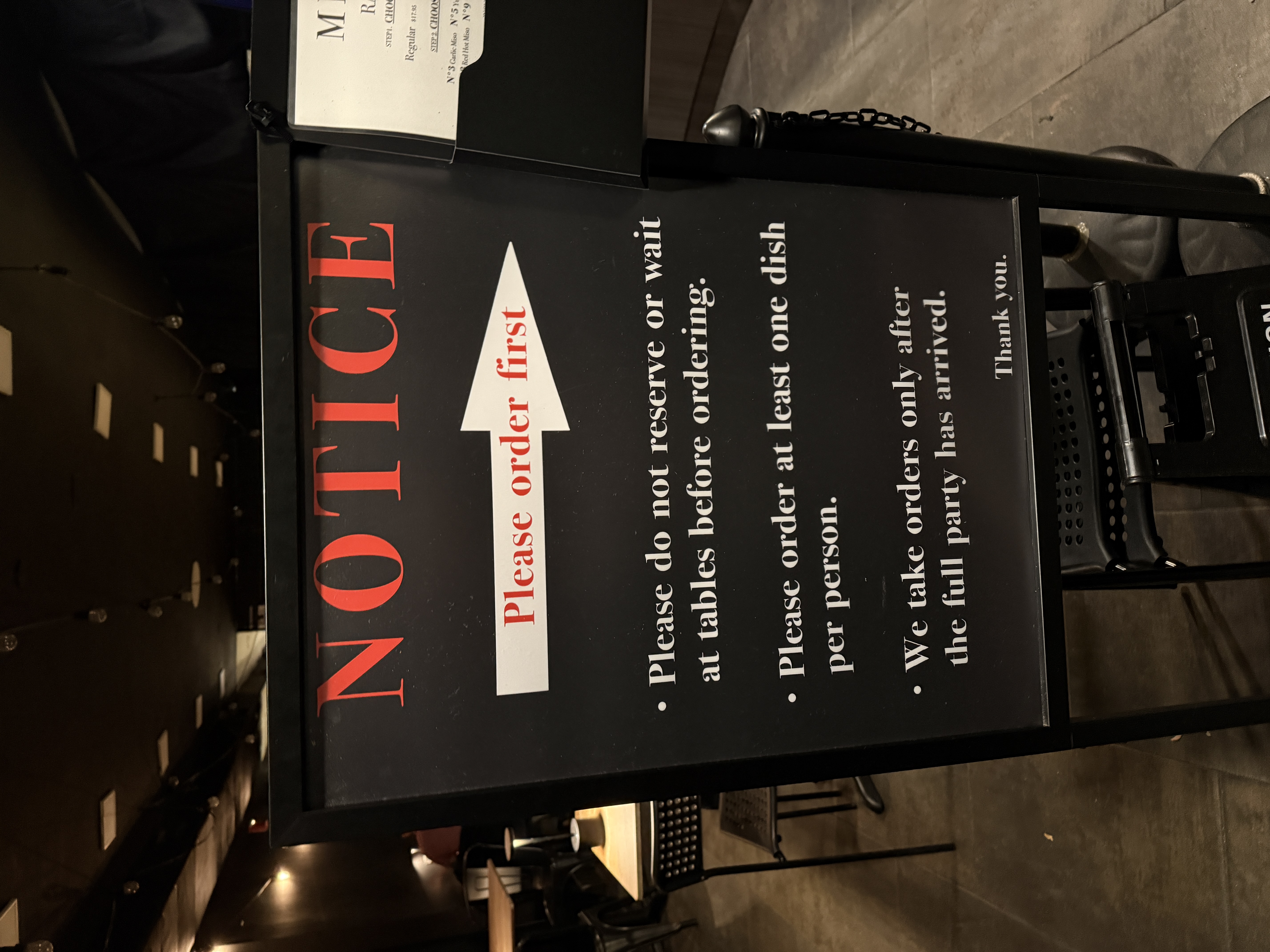 This ramen shop uses an order-first system, where you place your order before being seated. One downside is that everyone is required to order at least one item, which felt a bit strict. During busy hours, there is also a 45-minute time limit. Water is self-serve, and since the shop is located in downtown Boston, the prices are higher and there are quite a few rules overall.